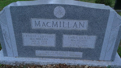 Birth Born on January 06, 1908 in Lot 30, Prince Co., PE Death Died on February 17, 1978 in Charlottetown, Queens Co., PE Buried in Sherwood Cemetery in Charlottetown, Queens Co., PE Marriages MACNEVIN, Emma Olivia Sources Cemetery: Sherwood Cemetery Charlottetown,PE Images Ernest & Olivia (MacNevin) MacMillan