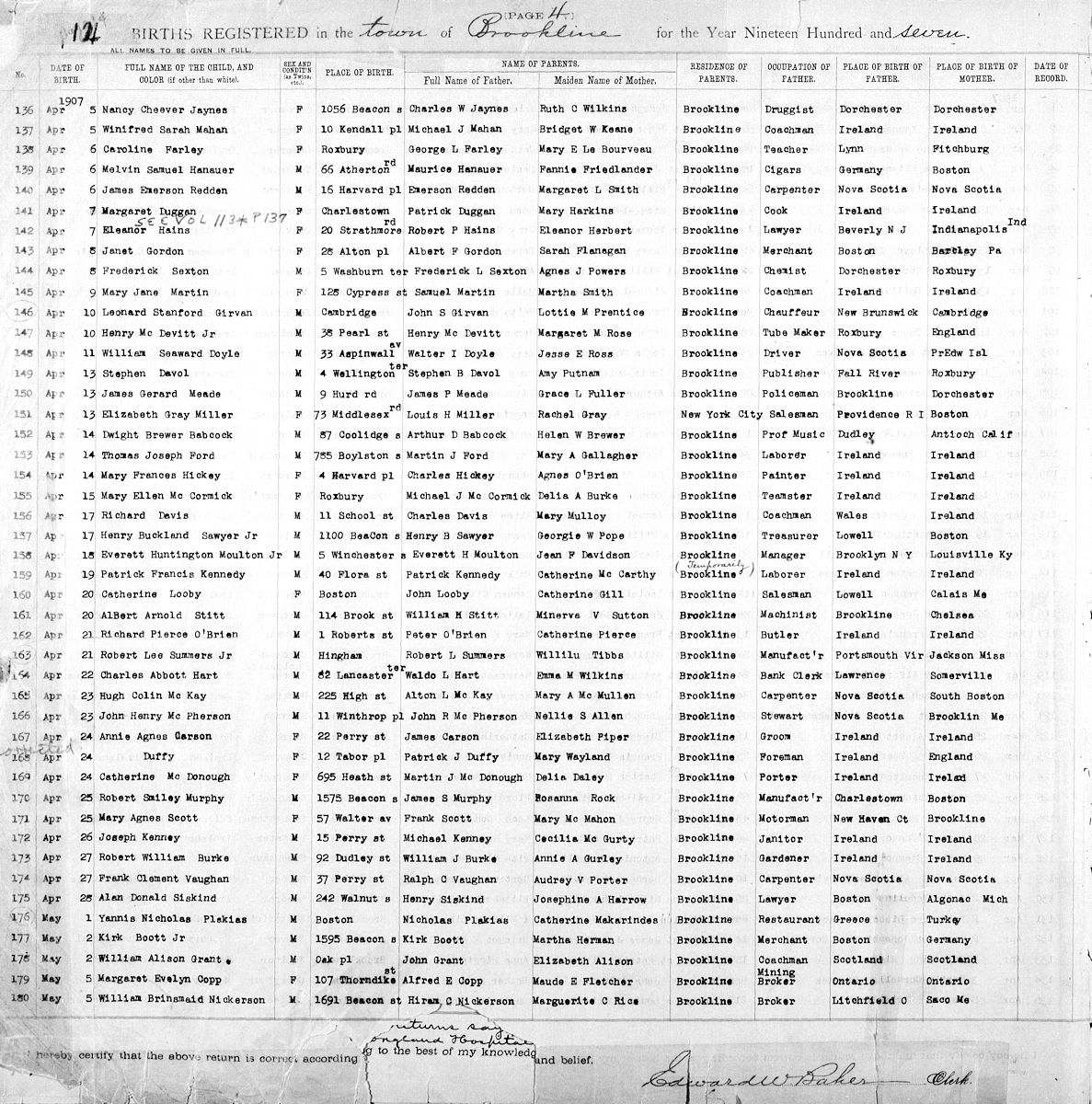 Parents Father: DOYLE, Walter Irvin Mother: ROSS, Jessie Elinor Birth Born on April 11, 1907 in Brookline, Norfolk Co., MA Death Died on May 26, 1992 in Malden, Middlesex Co., MA Buried in Puritan Lawn Memorial Park in Peabody, Essex Co., MA Marriages CORCORAN, Catherine Winifred Children DOYLE, Jeffrey I.: April 25, 1946 Notes Occupation: Apprentice Plumber/ Assembler - Radio Manufacturer Sources Massachusetts Deaths: #030898 Images William Doyle Birth
