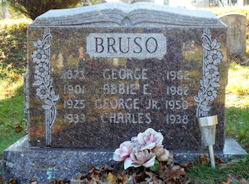 Birth Born on July 16, 1876 in Manchester, Bennington Co., VT Death Died on 1962 in Middleborough, Plymouth Co., MA Buried in Cemetery at The Green in Middleborough, Plymouth Co., MA Marriages PHINNEY, Abbie Ellington Married on May 08, 1924 in Manchester, Bennington Co., VT Children BRUSO, George: March 24, 1925 - September 27, 1950 BRUSO, Elizabeth: 1927 BRUSO, Virginia May: December 16, 1927 - January 14, 2002 BRUSO, Abbie Ellington: December 18, 1928 - July 03, 2001 BRUSO, Marie: January 16, 1931 BRUSO, Charles Grafton: June 27, 1933 - April 13, 1938 Sources Massachusetts Cemeteries: Cemetery at The Green Middleborough,,MA Images George Bruso Birth George & Abbie E. (Phinney) Bruso & George Jr & Charles Bruso George Bruso Marriage
