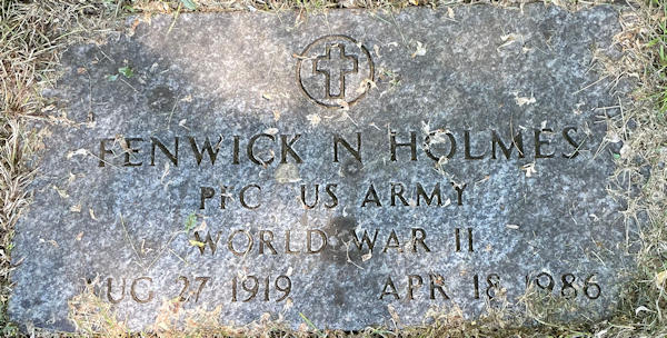 Parents Father: HOLMES, Arnold Norton Mother: RECORD, Winifred Beatrice Birth Born on August 27, 1919 in Greenland, Rockingham Co., NH Death Died on April 18, 1986 in York Co., ME Buried in Harmony Grove Cemetery in Portsmouth, Rockingham Co., NH Marriages WINN, Jacqueline Married on August 29, 1946 in Portsmouth, Rockingham Co., NH Notes Occupation: Farm Labourer Military Service: WW2 US Army Sources Maine Deaths: #8603067 Images Fenwick Holmes. Fenwick Holmes Fenwick Holmes MarriageA Fenwick Holmes Marriage