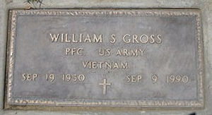 Parents Father: GROSS, Jack Lee Mother: CROFT, Mary Elizabeth Birth Born on September 19, 1950 in San Francisco Co., CA Death Died on September 09, 1990 in San Leandro, Alameda Co., CA Buried in Holy Sepulchre Cemetery in Hayward, Alameda Co., CA Notes Military Service: Vietnam US Army Images William Croft