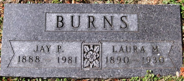 Birth Born on May 03, 1890 in Riceland, Freeborn Co., MN Death Died on 1930 in Luck, Polk Co., WI Buried in St. Peter's Lutheran Cemetery in Luck, Polk Co., WI Marriages BURNS, Jay Palnin Married on August 23, 1911 Children BURNS, Eleanor W.: 1913 BURNS, Mary Myra: June 25, 1914 - January 03, 2001 BURNS, Archie Jay: April 20, 1916 - June 16, 2003 BURNS, Leroy L.: 1917 - October 12, 1933 BURNS, Ethel Mae: December 16, 1921 - October 16, 1975 BURNS, David Lindley: October 14, 1924 - January 13, 2005 BURNS, Allen: 1927 Images Jay & Laura (Jorgenson) Burns