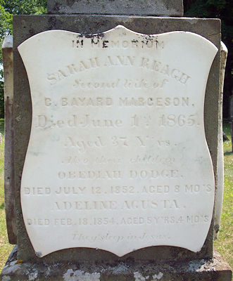 Parents Father: MARGESON, Charles Bayard Mother: REAGH, Sarah Ann Birth Born on 1851 in Wilmot, Annapolis Co., NS Death Died on July 12, 1852 in Wilmot, Annapolis Co., NS Buried in Pine Grove Cemetery in Middleton, Annapolis Co., NS Sources Annapolis Cemetery Records: Pine Grove Cemetery Middleton,NS Images Sarah (Reagh),Obediah D.,Adeline Margeson