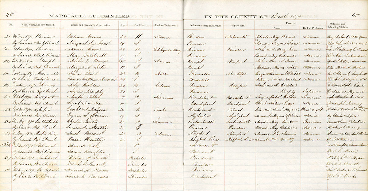 Birth Born on October 27, 1850 in Aylesford, Kings Co., NS Death Died on December 26, 1932 in Vancouver, Metro Vancouver Region, BC Buried in Ocean View Burial Park in Burnaby, Metro Vancouver Region, BC Marriages MARGESON, Charles Inglis Married on October 19, 1870 in Aylesford, Kings Co., NS Children MARGESON, Eva Van Arsdel: October 30, 1872 - February 11, 1944 MARGESON, Wylie Churchill: February 25, 1875 - August 31, 1933 MARGESON, Harry Burton: October 13, 1880 - April 09, 1978 MARGESON, Karl Andrew: May 27, 1884 - August 15, 1953 MARGESON, Paul Eve: February 02, 1892 - 1972 Sources BC Deaths: 1932-09-472626 Images Charles I. Margeson Marriage Emma (Robinson) Margeson Obit Charles I. & Emma (Robinson) Margeson Emma Robinson