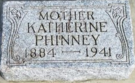 Birth Born on 1884 in Blackberry, Kane Co., IL Death Died on May 18, 1941 in Otter Tail Co., MN Buried in Saint Charles Cemetery in Herman, Grant Co., MN Marriages PHINNEY, Arthur Hodgson Married on October 22, 1905 in Eldorado, Stevens Co., MN Children PHINNEY, Susie Katherin: August 27, 1906 - April 12, 1970 PHINNEY, Katherine Mary: May 27, 1909 - February 24, 1968 PHINNEY, William Henry: September 26, 1911 PHINNEY, Elizabeth Ellen: May 20, 1918 - December 19, 1989 PHINNEY, Mary Bridget: April 24, 1921 - September 14, 1986 PHINNEY, Charlotte: 1925 Sources Minnesota Deaths: CertID# 1941-MN-011180 Images Katherine (Prince) Phinney