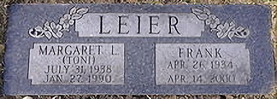 Birth Born on April 26, 1934 in St. Paul, Ramsey Co., MN Death Died on April 14, 2000 in Vadnais Heights, Ramsey Co., MN Buried in Elmhurst Cemetery in St. Paul, Ramsey Co., MN Marriages GROVER, Sharon Lee Married on February 03, 2000 in Reno, Washoe Co., NV Notes Obituary: Leier, Frank, age 65, of Vadnais Heights, on April 14. Preceded in death by first wife, Toni; granddaughter, Emily; parents, Frank & Florence; and sister, Bernice Kishel. Survived by wife, Sharon (Quesnell); daughter, Deborah (Rodney) Patrin; 6 grandchildren, 1 great-grandson; brother, Edwin (Theresa); sisters, Marcella (Joe) Kujawa, Florence Bergquist, Doris (Bud) Gressman, and Arlene (Denny) Larson; and many nieces, nephews and friends. Frank was a member of The American Cribbage Congress. Visitation 4-8 PM SUNDAY (TODAY) at MUELLER MORTUARY PARKWAY CHAPEL, Johnson Pkwy. @ E. 7th St. with prayer vigil 7 PM, also visitation 1 hour before service at church. Mass of Christian Burial 10 AM MONDAY at SACRED HEART CATHOLIC CHURCH, 840 E. 6th St. Interment Elmhurst Cemetery. In lieu of flowers, memorials preferred. I'm going to know before you do. muelrpk .. . Linnel (Bryan), Ruth B., age 95 of W. St. Paul MN. Complete notice to follow. JOHNSON-PETERSON FUNERAL HOME 651-222-3220 St. Paul Pioneer Press St. Paul,MN April 16,2000 Sources Minnesota Deaths: #2000-MN-011076 Images Frank Leier Frank Leier