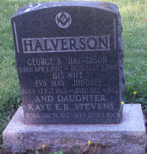 Birth Born on January 24, 1932 Death Died on June 04, 2007 Buried in Monument Hill Cemetery in Wallace Grant, Cumberland Co., NS Marriages STEVENS, W. Webster Children STEVENS, Joanne Christine: March 17, 1956 - April 05, 2013 Sources Cumberland Cemetery Records: Monument Hill Cemetery Wallace Grant,NS Images Katherine (Halverson) Stevens