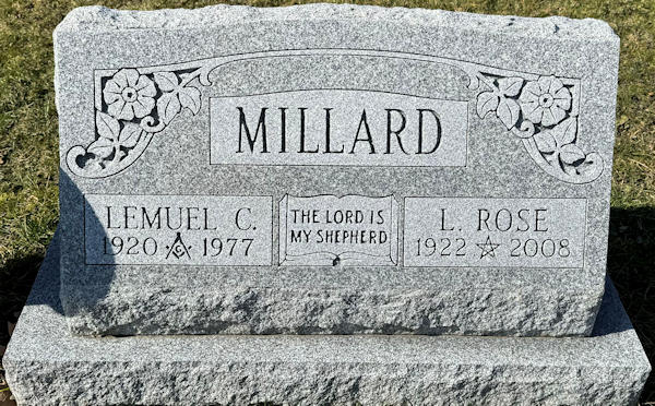 Parents Father: MILLARD, Crawford F. Mother: DAUREY, Blanche Bertha Birth Born on September 22, 1920 in Rockingham, Halifax Co., NS Death Died on February 13, 1977 in West Seneca, Erie Co., NY Buried in Saint Matthews Cemetery in West Seneca, NY Marriages , Louise Rose Children MILLARD, Penelope: 1947 Notes Military Service: WW2 US Army Occupation: Waiter Sources Cemetery: Saint Matthews Cemetery West Seneca,NY Images Lemuel C. Millard Birth Lemuel C. & Rose Millard Lemuel C. Millard