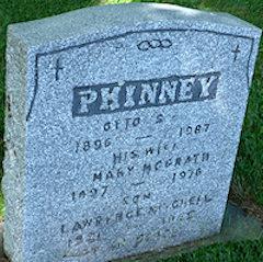 Parents Father: PHINNEY, James William Mother: McLEOD, Clarissa Mabel Birth Born on June 20, 1897 in Parrsboro, Cumberland Co., NS Death Died on 1987 in Parrsboro, Cumberland Co., NS Buried in Saint George's Anglican Cemetery in Parrsboro, Cumberland Co., NS Marriages McGRATH, Mary Alise Married on December 01, 1915 in Parrsboro, Cumberland Co., NS Children PHINNEY, Lawrence Mitchell: September 07, 1921 - July 07, 1965 PHINNEY, Laura Rhoda: 1922 - May 11, 1997 PHINNEY, Marguerite V.: 1924 - February 12, 2018 PHINNEY, Cecelia B.: 1926 - November 22, 2011 Notes Occupation: Coal Dumper/ Coat Merchant Sources Cumberland Cemetery Records: Saint George's Anglican Cemetery Parrsboro,NS Images Otto & Mary (McGrath) & Lawrence M. Phinney Otto & Mary (McGrath) Phinney Otto Phinney Marriage Otto Phinney Marriage