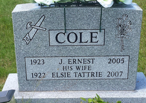 Parents Father: COLE, MacLellan W. Mother: TATTRIE, Margaret Clark Birth Born on February 28, 1923 in Tatamagouche, Colchester Co., NS Death Died on June 13, 2005 in Tatamagouche, Colchester Co., NS Buried in Lockerby Memorial Cemetery in Tatamagouche, Colchester Co., NS Marriages TATTRIE, Laurie Elsie Married on June 22, 1943 in Wallace, Cumberland Co., NS Children COLE, Eleanor COLE, Wendell Cecil: September 22, 1948 - March 06, 2025 Notes Occupation: Farmer/ Woodsman/ Carpenter Obituary: COLE, J. Ernest - 82, Tatamagouche, passed away peacefully at his home on June 13, 2005, surrounded by his wife and family. Born in Richmond, Cumberland Co., he was a son of the late MacLellan ""Mac"" and Margaret (Tattrie) Cole. Ernie lived in the Tatamagouche area where he worked in the woods and later became a well-known carpenter. He is survived by his wife of 61 years, the former Elsie Tattrie; daughter, Eleanor Clark (Bill), Comox, B.C.; son, Wendell (Janet), Tatamagouche; grandchildren, Shelley, Scott, Coralee (Joe), Terry (Julie), Sandy; greatgrandchildren, Bailey, Bryanna, Braycen; sisters, Muriel Hillier (Gordon), Tatamagouche; Phyllis Sutherland (Bill), Calgary; brother, Willis (Marion), Tatamagouche; several nieces and nephews. Visitation will be today from 2-4 and 7-9 p.m. with funeral service Wednesday at 2 p.m., Rev. Bonnie Kelly officiating, both in Coulter's Funeral Home, Tatamagouche. Interment to take place in Lockerby Memorial Cemetery, Tatamagouche. Family flowers only. Memorial donations to the Canadian Cancer Society, North Shore Health Services Foundation or any charity would be appreciated. Sources Funeral Home: Coulter's Funeral Home Tatamagouche,NS Obituary June 2005 Images James Cole Birth James & Laurie (Tattrie) Cole James Cole Marriage