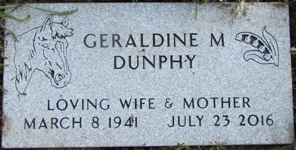 Parents Father: FRASER, Hartley Clair Mother: RUSS, Marie Ellen Birth Born on March 08, 1941 in Belfast, Waldo Co., ME Death Died on July 23, 2016 in Brooks, Waldo Co., ME Buried in Mount Prospect Cemetery in Stockton Springs, Waldo Co., ME Marriages DUNPHY, Augustus Arthur Married on March 01, 1961 in Maine, USA WIGHT, Hal O. Married on April 01, 1959 in Maine, USA Children DUNPHY, Ellen Marie: November 12, 1960 DUNPHY, Kirk Arthur: March 11, 1964 - May 27, 1973 DUNPHY, Monty Allen: May 01, 1965 Notes Occupation: Owner Beauty Salon/ Nutritional Aide Obituary: Geraldine Marie Dunphy, 75, passed away at her home July 23, 2016. Born March 8, 1941, in Belfast to Hartley K. Fraser and Marie Ellen Russ Fraser, she grew up in Stockton Springs. She attended and graduated from Stockton Springs High School and then graduated from cosmetology school. Geraldine owned and operated a beauty shop in Unity and Brooks. She retired from the University of Maine Cooperative Extension as a nutritional aide. Geraldine married Augustus A. Dunphy and together they had three children, Ellen Marie, Kirk Arthur and Monty Allen. They lived in Pittsfield and for the last 40 years they lived in Brooks. She enjoyed singing, playing guitar and traveling with family and friends. In her later life, she spent time on the computer making friends and traveling all over the world to visit with them and them to her. They became her chat room family. Mrs. Dunphy was predeceased by her parents; her husband Augustus; her young son Kirk Arthur; her sister and her two brothers. She is survived by her daughter Ellen Trundy and her husband Warren of Minot; her son Monty Dunphy and his partner Kathy of Jackson; her six grandchildren; 12 great-grandchildren; six brothers and one sister; and many other family members and close friends. In lieu of flowers, send donations to Maine Health Care at Home Hospice, 170 Pleasant St., Rockland, ME 04841, in memory of Geraldine Dunphy. Memories and condolences may be shared with the family at ripostafh.com. Arrangements are under the care of Riposta Funeral Home, 182 Waldo Ave., Belfast. The Republican Journal Belfast,ME July 26,2016 Sources Newspaper Obituary: The Republican Journal Belfast,ME July 26,2016 Images Geraldine (Fraser) Dunphy