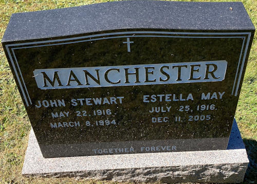 Parents Father: MANCHESTER, Percival Mother: MORRISON, Hazel Birth Born on May 22, 1916 in Lancaster, Saint John Co., NB Death Died on March 08, 1994 in Halifax, Halifax Regional Municipality, NS Buried in St. Thomas Anglican Cemetery in Musquodoboit Harbour, Halifax Co., NS Marriages WOODWORTH, Estella Mae Married on September 24, 1941 in Milford, Hants Co., NS Children MANCHESTER, Judith Ann: February 11, 1946 Notes Occupation: Doctor of Radiology Sources Halifax Herald: Obituary March 1994 Images John Manchester Birth John & Estella (Woodworth) Manchester Estella Woodworth Marriage John Manchester Obit