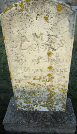 Parents Father: JOYCE, John Mother: KENT, Mary Jane Birth Born on 1868 in Lower Truro, Colchester Co., NS Death Died on October 10, 1878 in Lower Truro, Colchester Co., NS Buried in Robie St. Cemetery in Truro, Colchester Co., NS Sources Colchester Cemeteries: Truro Robie St. Cemetery N-7 #71 Images James E. Joyce