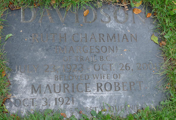 Birth Born on October 03, 1921 Death Died on 2016 in Toronto, ON Buried in Mount Pleasant Cemetery in Toronto, ON Marriages MARGESON, Ruth Charmian Sources Cemetery: Mount Pleasant Cemetery Toronto,ON Images Maurice & Ruth (Margeson) Davidson