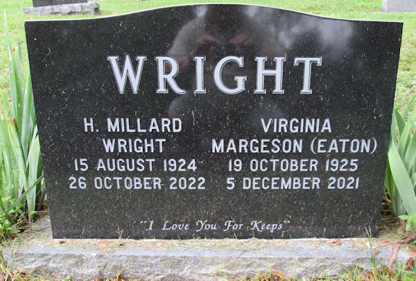 Parents Father: EATON, Horace Mann Mother: CLARK, Laura Marguerite Birth Born on October 19, 1925 in Boston, Suffolk Co., MA Death Died on December 05, 2021 in Halifax, Halifax Regional Municipality, NS Buried in Clementsvale Cemetery in Clementsvale, Annapolis Co., NS Marriages WRIGHT, Harry Millard Married on 1947 Sources Annapolis Cemetery Records: Clementsvale Cemetery Clementsvale,NS Images Virginia Eaton Birth Hary & Virginia (Eaton) Wright