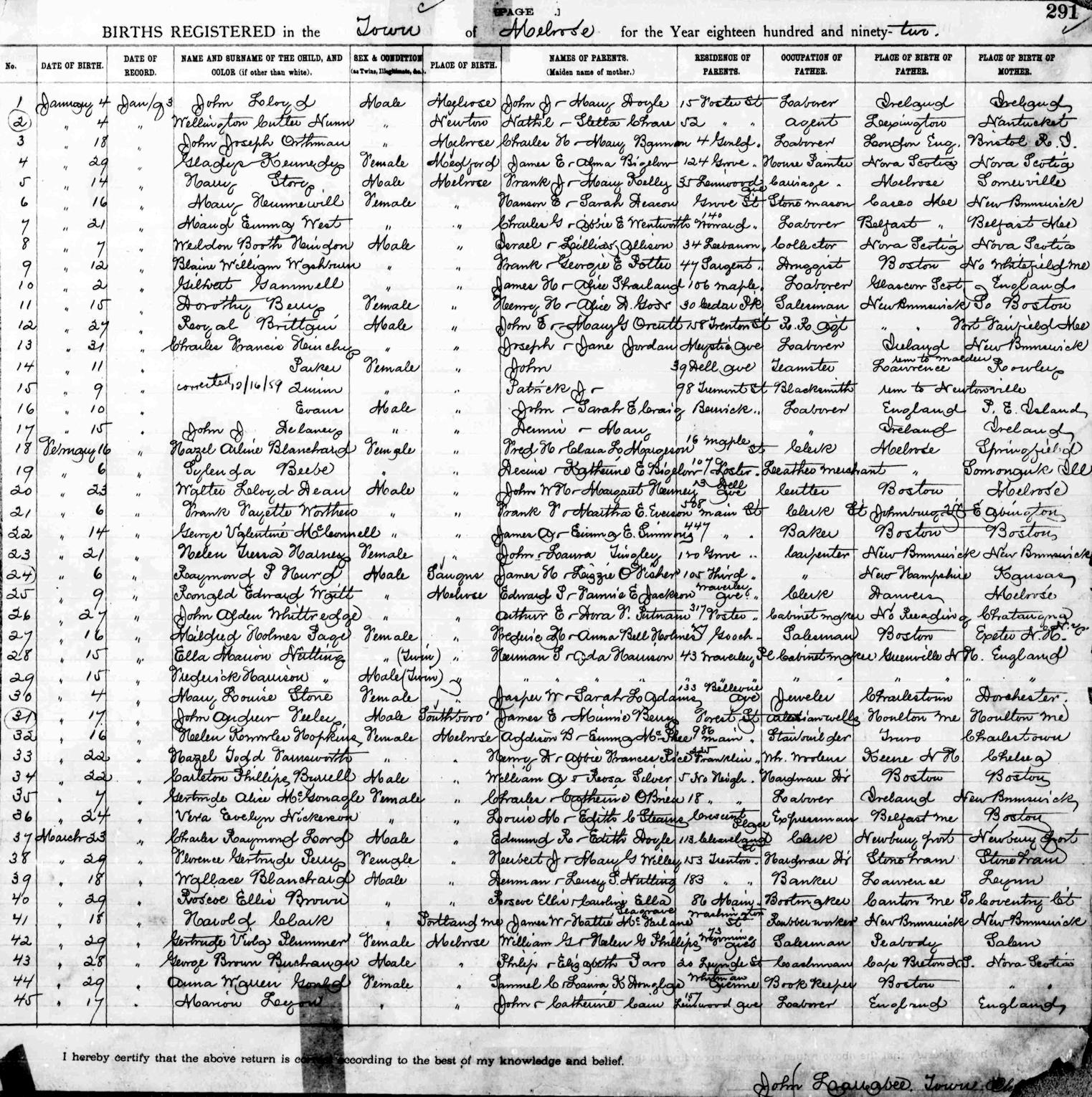 Parents Father: BLANCHARD, Fred Howard Mother: MARGESON, Clara L. Birth Born on February 16, 1892 in Melrose, Middlesex Co., MA Death Died on 1920 in Boston, Suffolk Co., MA Marriages WHEATON, Ernest Hilton Married on January 25, 1909 in Providence, Providence Co., RI Children WHEATON, Boy: May 10, 1909 - May 12, 1909 WHEATON, Doris Ernestine: November 25, 1910 - October 24, 1984 WHEATON, Mildred Arline: June 03, 1914 - October 22, 1991 WHEATON, Eleanor Augusta: July 21, 1915 - 1956 WHEATON, Ralph Howard: March 06, 1919 - May 24, 1986 Images Hazel Blanchard Birth Hazel Blanchard Marriage