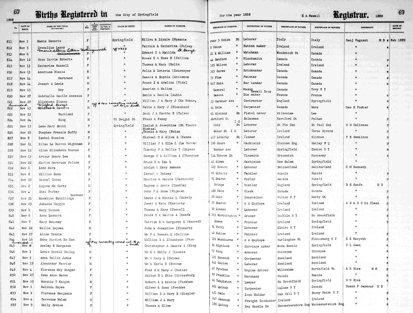 Parents Father: MARGESON, Christopher Mother: KING, Alice Jennie Birth Born on November 01, 1888 in Springfield, Hampden Co., MA Images Ansley Margeson Birth