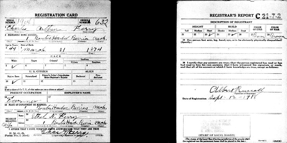 Birth Born on March 31, 1874 in Illinois, USA Death Died on September 29, 1970 in Los Angeles, Los Angeles Co., CA Buried in Live Oak Memorial Park in Monrovia, Los Angeles Co., CA Marriages NEWCOMB, Ethel Augusta Married on August 15, 1912 in Oak Park, Cook Co., IL Children FERRY, Ruth Helen: September 19, 1913 - May 19, 1973 Notes Occupation: Wholesale Jewellery/ Salesman/ Painter Sources California Deaths: #39884 Images Charles & Ethel (Newcomb) Ferry Charles Ferry WW1 Draft