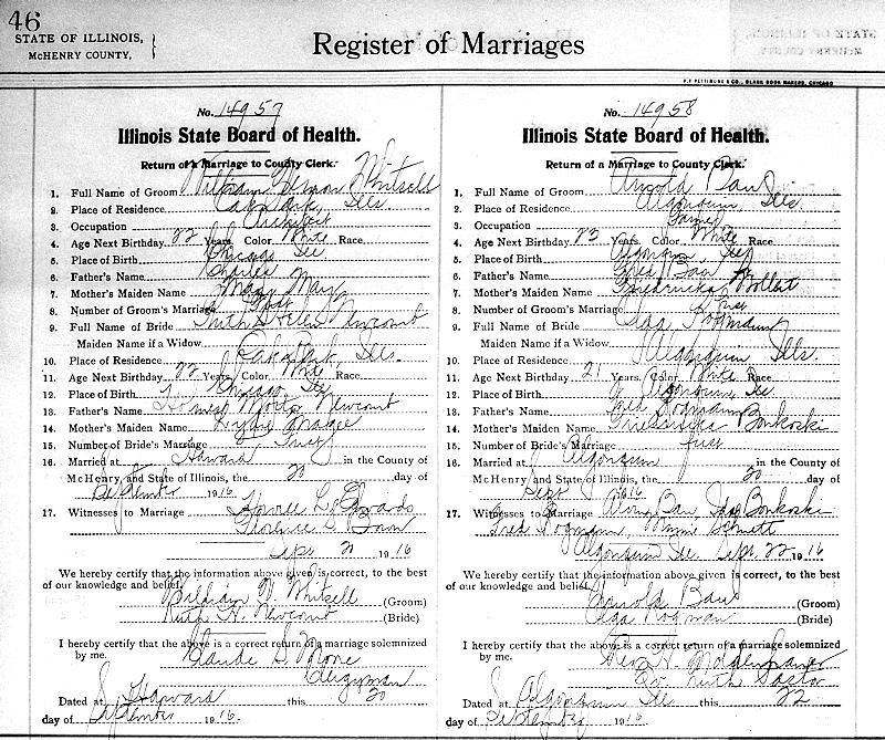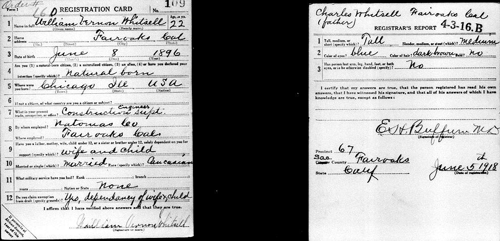 Birth Born on June 08, 1896 in Chicago, Cook Co., IL Death Died on February 04, 1997 in Santa Barbara, Santa Barbara Co., CA Marriages NEWCOMB, Ruth Helen Married on September 20, 1916 in Harvard, McHenry Co., IL Children WHITSELL, Elizabeth Louise: January 25, 1918 - October 19, 1993 WHITSELL, Robert H.: August 07, 1919 - March 29, 2008 WHITSELL, William Charles: February 15, 1922 - April 03, 1989 WHITSELL, Ruth Newcomb: January 31, 1931 Notes Occupation: Costruction Engineer Superintendant/ Contractor Images William Whitsell WW1 Draft William Whitsell WW2 Draft Ruth Newcomb Marriage