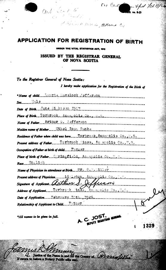 Birth Born on June 18, 1907 in Torbrook Mines, Annapolis Co., NS Death Died on March 26, 1995 in Norwood, Norfolk Co., MA Buried in Knollwood Memorial Park in Canton, Norfolk Co., MA Marriages ARMSTRONG, Margaret Odessa Sources Massachusetts Deaths: #023298 Images Laurie Jefferson Birth Laurie Jefferson Obit