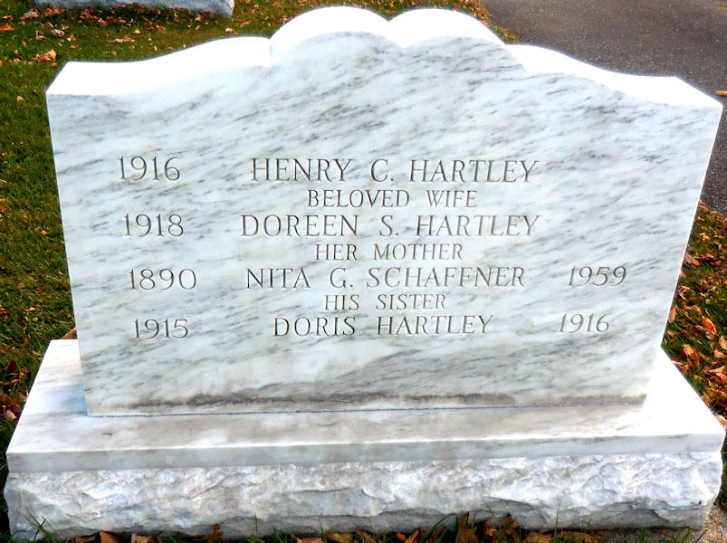Parents Father: SCHAFFNER, Lawrence Bernard Mother: BALCOM, Nita Georgena Birth Born on 1918 in Medicine Hat, Cypress District., AB Death Died on March 04, 2017 in Quincy, Norfolk Co., MA Buried in Derby Line Cemetery in Derby Line, Orleans Co., VT Marriages HARTLEY, Henry Campbell Sources Mormons: https://www.familysearch.org/en/tree/person/details/GH3H-1QL Images Henry & Doreen (Schaffner) Hartley & Nita (Balcom) Schaffner Doreen Schaffner