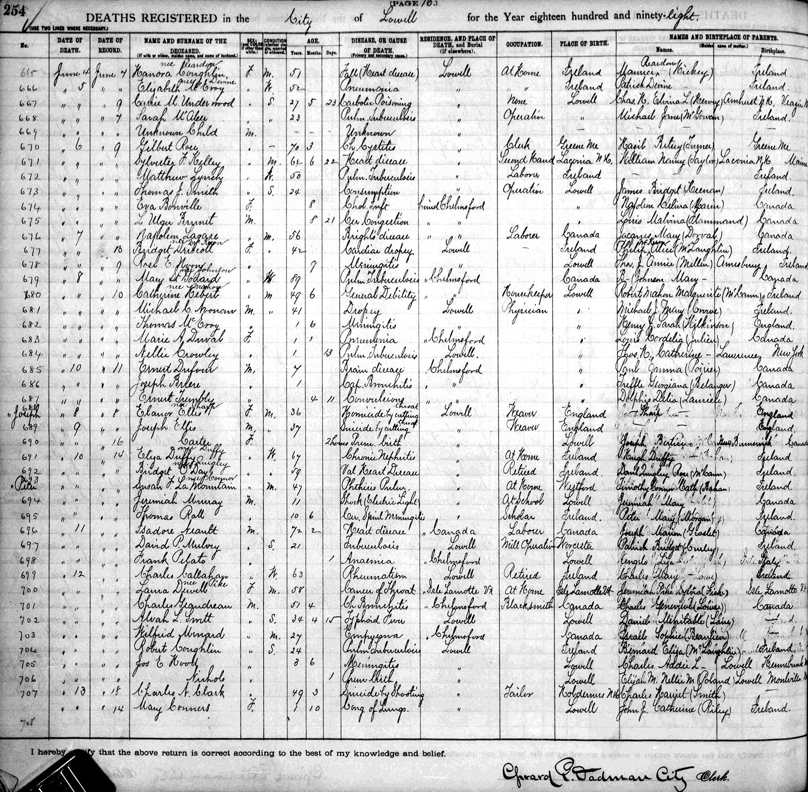 Parents Father: NICHOLS, Elijah M. Mother: POLAND, Nellie Mariah Birth Born on June 12, 1898 in Lowell, Middlesex Co., MA Death Died on June 12, 1898 in Lowell, Middlesex Co., MA Buried in Edson Cemetery in Lowell, Middlesex Co., MA Notes Death: Premature Birth Sources Massachusetts Deaths: Lowell Pg. 254 #706 Images Boy Nichols Death