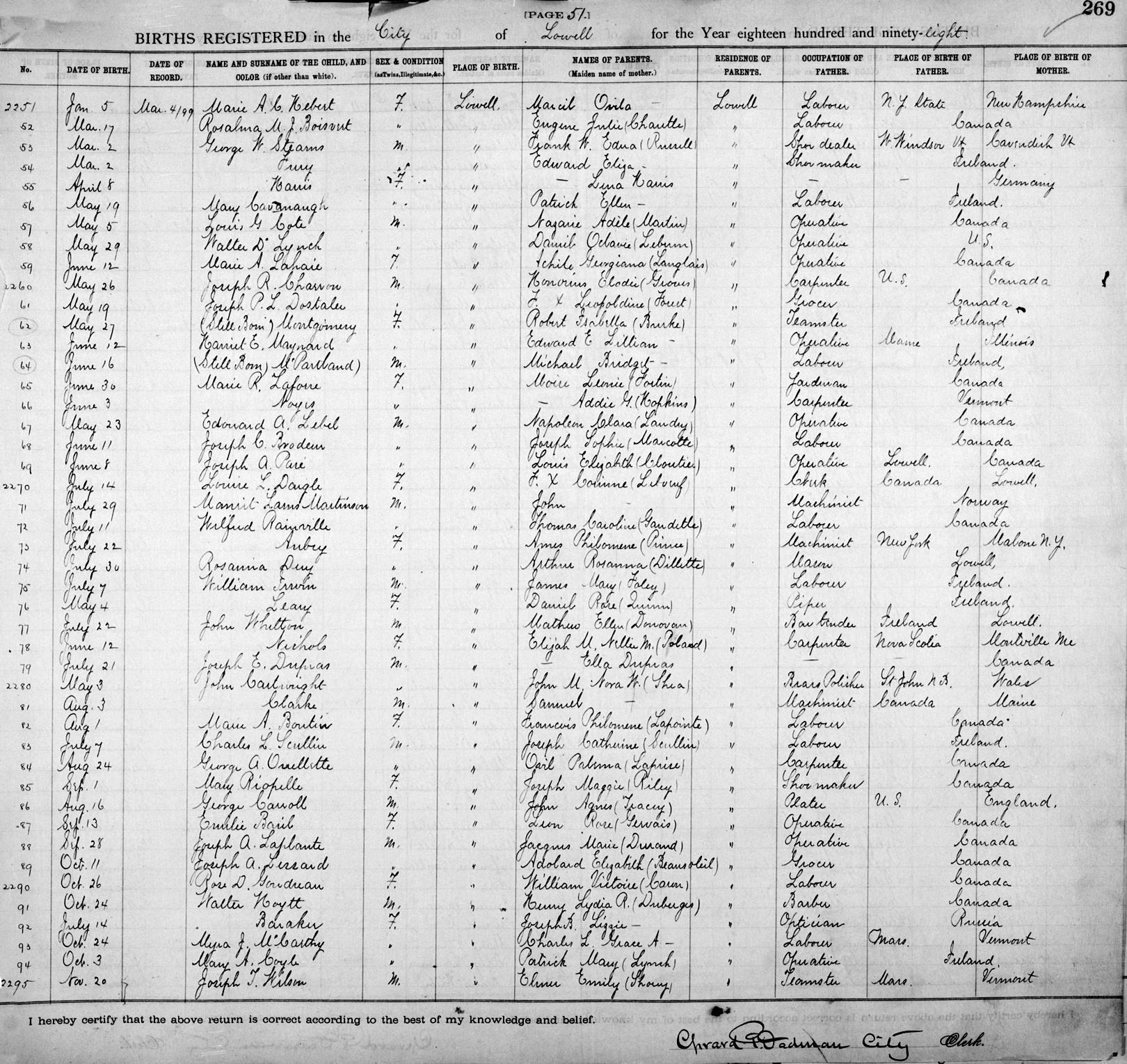 Parents Father: NICHOLS, Elijah M. Mother: POLAND, Nellie Mariah Birth Born on June 12, 1898 in Lowell, Middlesex Co., MA Death Died on June 12, 1898 in Lowell, Middlesex Co., MA Notes Death: Premature Birth Sources Massachusetts Cemeteries: Woodbine Cemetery Lowell,MA Images Girl Nichols Birth Elijah,Charles,Hazel,Girl Nichols