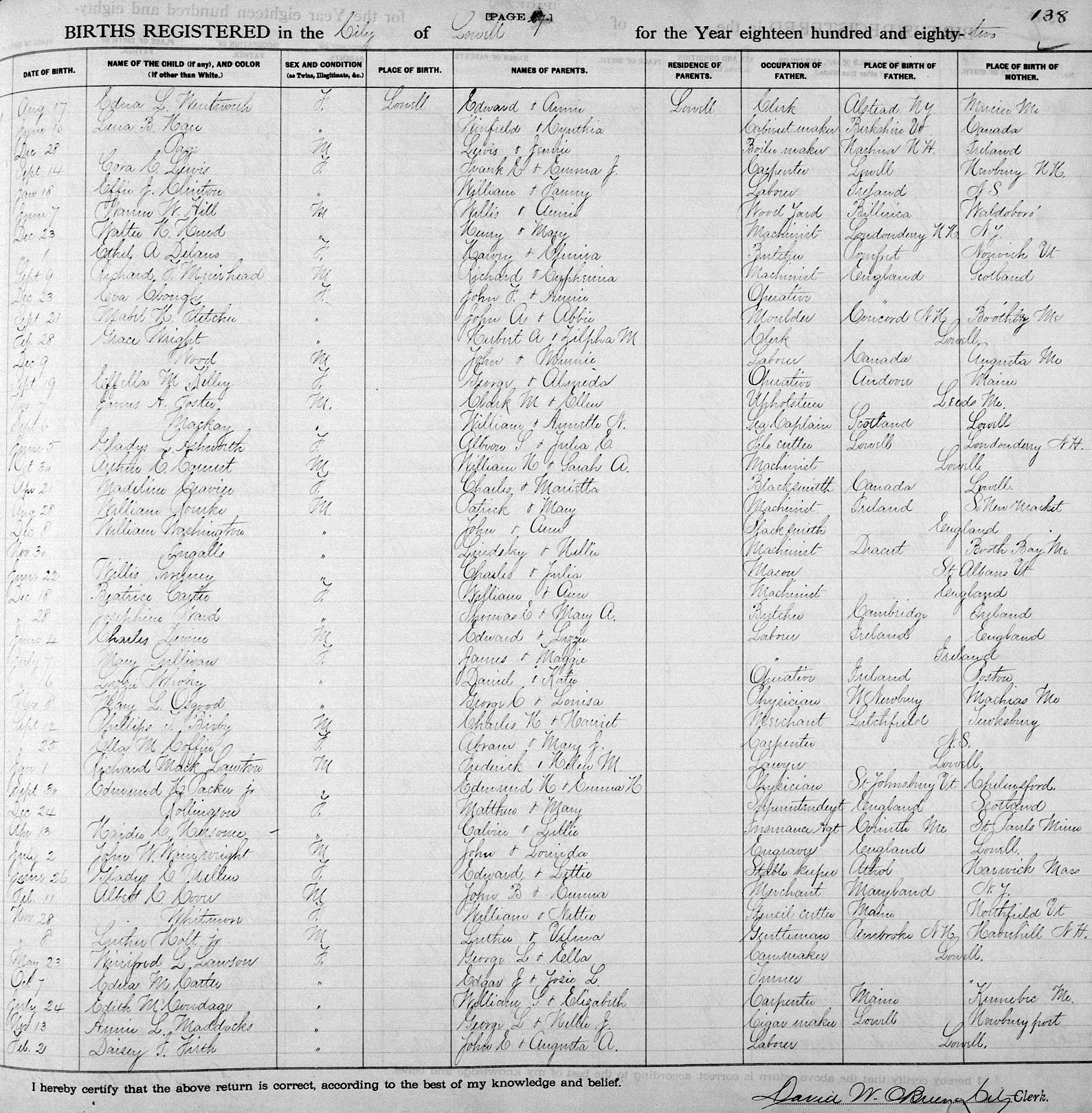 Parents Father: COFFIN, Abraham Owen Mother: NICHOLS, Mary Jane Birth Born on September 25, 1882 in Lowell, Middlesex Co., MA Death Died on March 02, 1970 in Lowell, Middlesex Co., MA Buried in Drake Cemetery in Tyngsborough, Middlesex Co., MA Marriages CURRIER, Bertrand Ralph Married on March 07, 1906 in Lowell, Middlesex Co., MA Children CURRIER, Ruth Maude: July 05, 1908 - 1968 CURRIER, Ralph Bertrand: January 24, 1910 - June 09, 1971 CURRIER, Clayton Foster: December 18, 1911 - August 18, 1916 CURRIER, Charles Herbert: September 11, 1913 - January 19, 1977 CURRIER, Phyllis M.: March 30, 1916 Sources Massachusetts Deaths: #009128 Images Ella Coffin Birth Bertrand & Ella (Coffin) Currier,Clayton Currier,Charles & Marjorie (Huntley) Currier Ella Coffin Marriage
