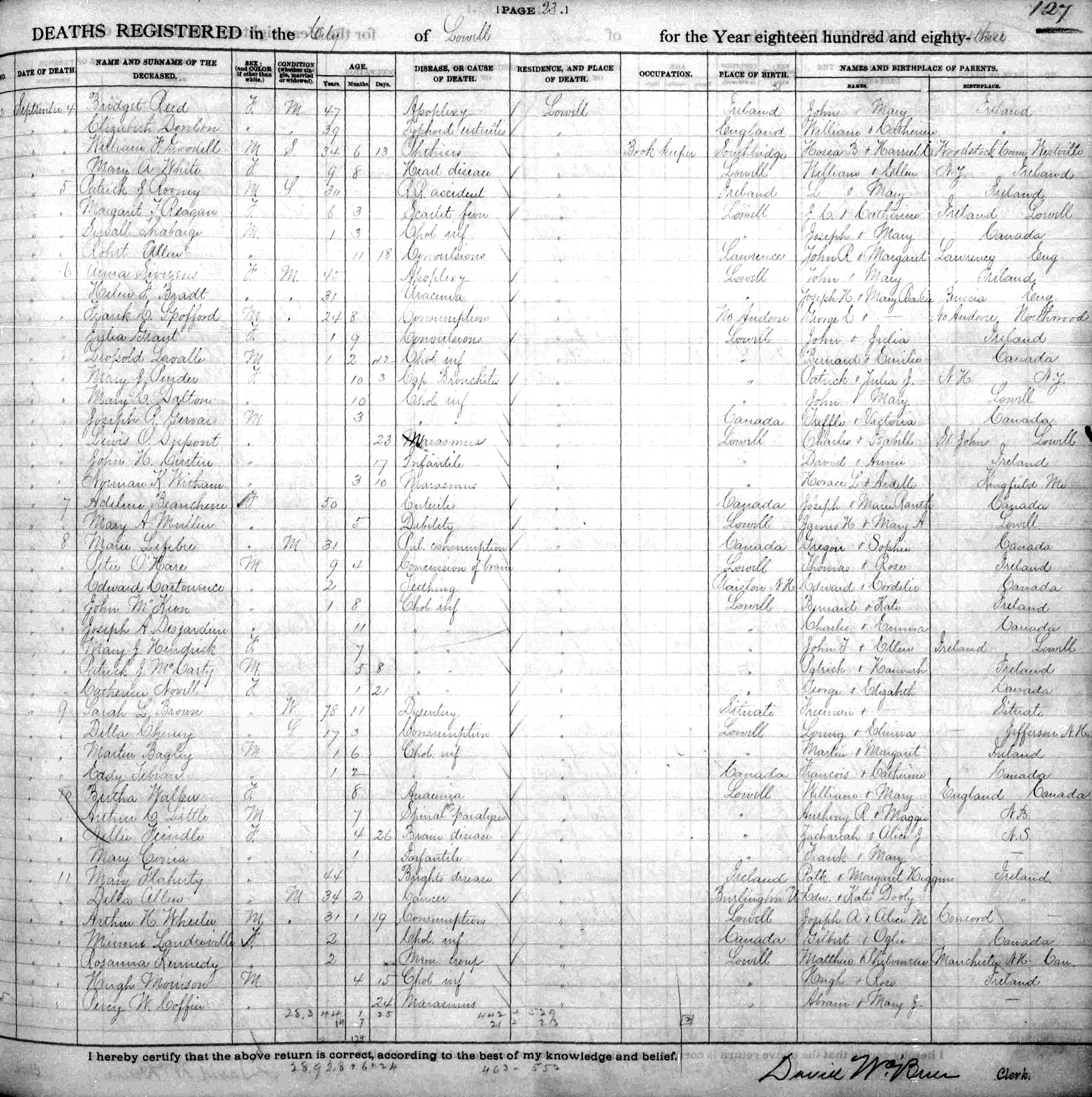 Parents Father: COFFIN, Abraham Owen Mother: NICHOLS, Mary Jane Birth Born on August 18, 1883 in Lowell, Middlesex Co., MA Death Died on September 11, 1883 in Lowell, Middlesex Co., MA Sources Massachusetts Deaths: Lowell Pg. 127 #1015 Images Percy Coffin Birth Abraham & Mary J. (Nichols) Coffin & Percy,Amy,Lilla Coffin Percy Coffin Death