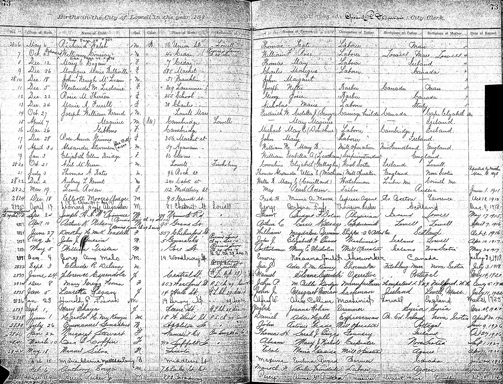 Parents Father: COFFIN, Abraham Owen Mother: NICHOLS, Mary Jane Birth Born on March 10, 1896 in Lowell, Middlesex Co., MA Death Died on May 27, 1973 in Lowell, Middlesex Co., MA Marriages MACBURNIE, James William Married on June 16, 1923 in Tyngsborough, Middlesex Co., MA Notes Occupation: Stenographer Sources Massachusetts Deaths: #021279 Images Cora Coffin Birth Cora Coffin Marriage