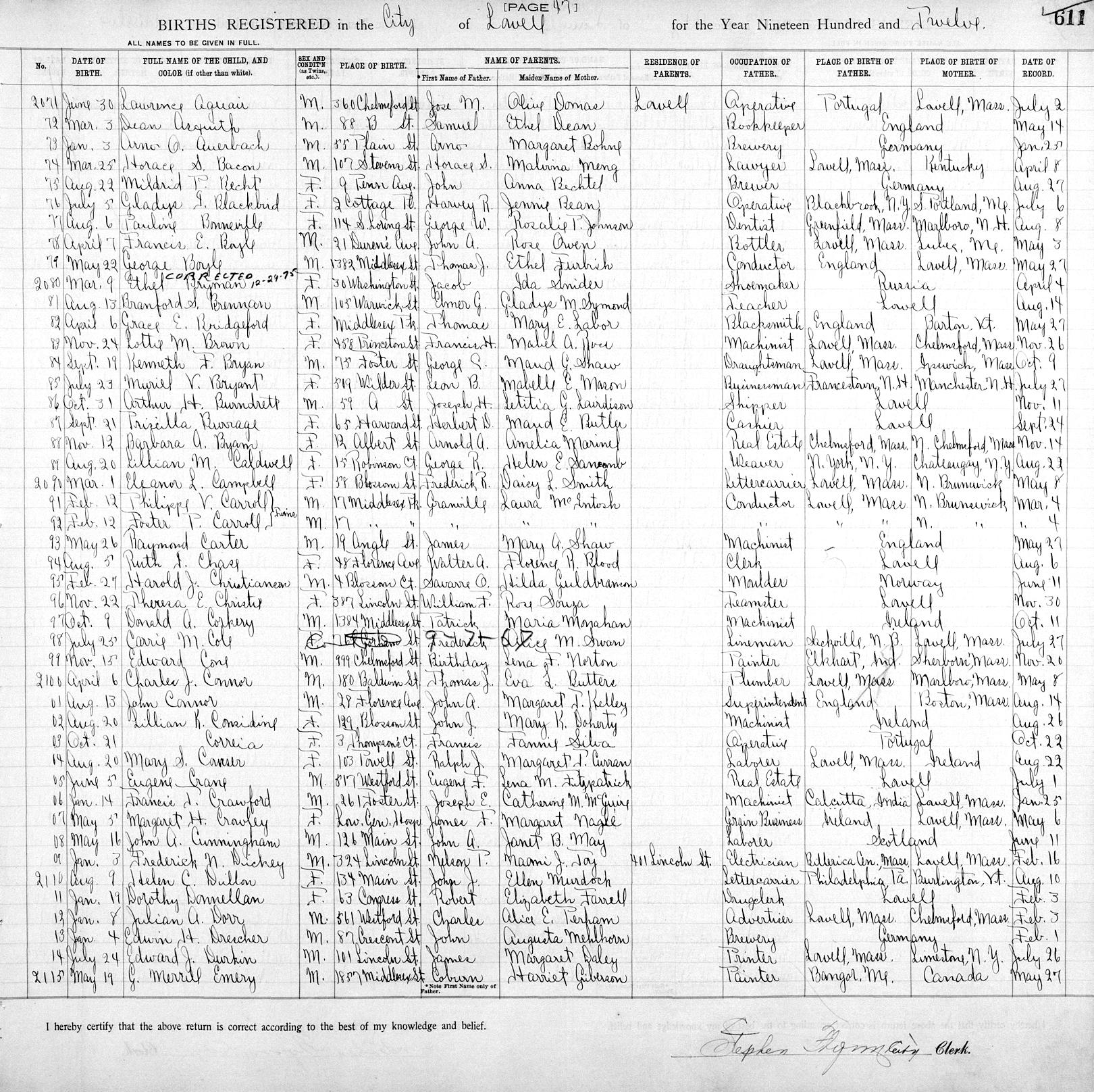 Birth Born on November 12, 1912 in Lowell, Middlesex Co., MA Death Died on February 16, 1992 in Acton, Middlesex Co., MA Buried in Heart Pond Cemetery in South Chelmsford, Middlesex Co., MA Marriages CURRIER, Charles Herbert Married on June 13, 1933 in Nashua, Hillsborough Co., NH Sources Massachusetts Deaths: #018645 Images Barbara Byam Birth Barbara Byam Charles Currier Marriage