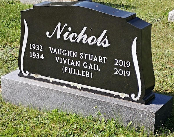 Birth Born on April 07, 1934 in Hortonville, Kings Co., NS Death Died on March 12, 2019 in Kentville, Kings Co., NS Buried in Morristown Cemetery in Morristown, Kings Co., NS Marriages NICHOLS, Vaughn Stuart Children NICHOLS, Douglas NICHOLS, Marla NICHOLS, Craig Sources Findagrave.com: https://www.findagrave.com/memorial/197576062/vivian_gail-nichols Images Vaughn & Vivian (Fuller) Nichols Vivian Fuller