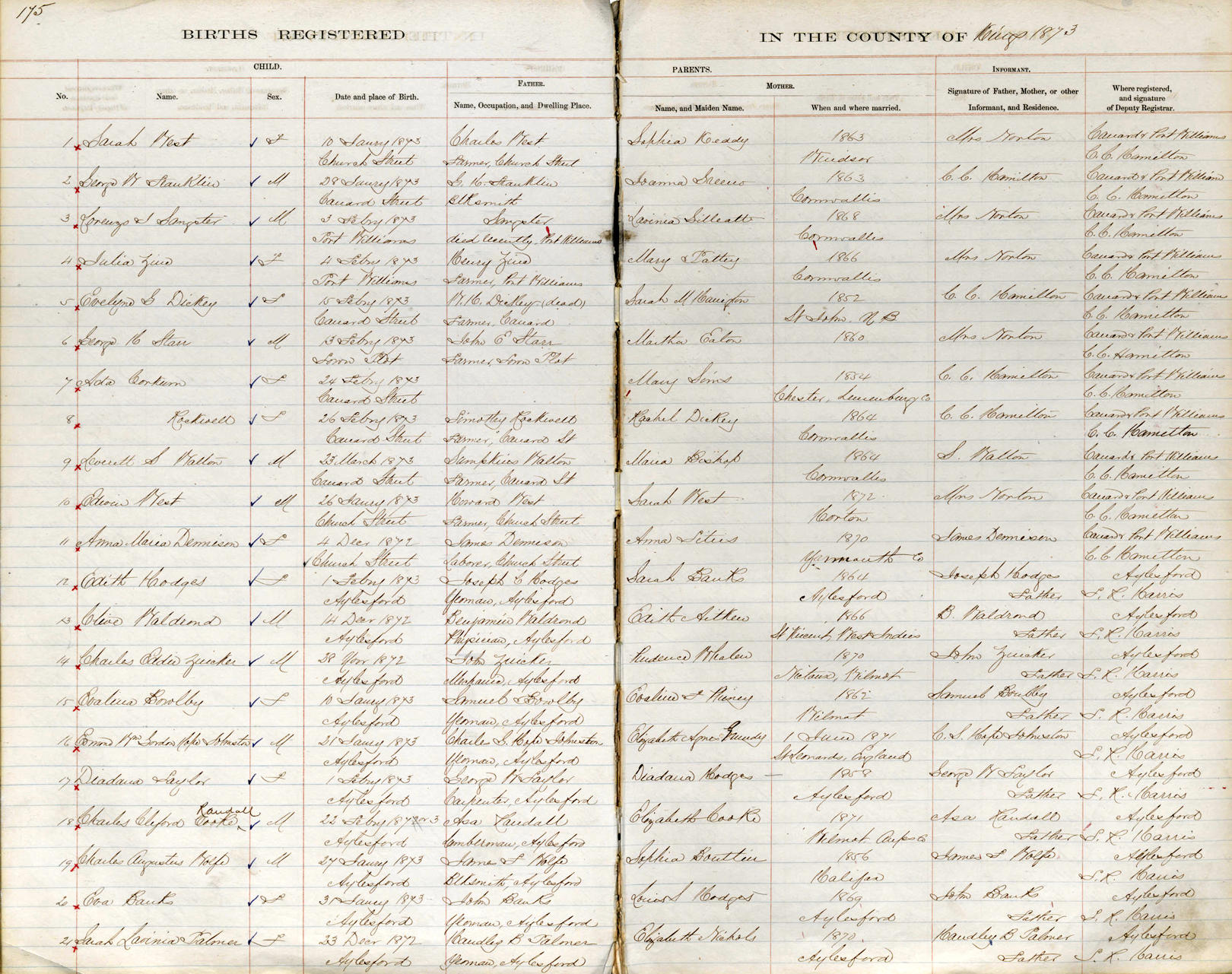 Parents Father: PALMER, Handley B. Mother: NICHOLS, Elizabeth A. Birth Born on December 23, 1872 in Aylesford, Kings Co., NS Images Sarah Palmer Birth