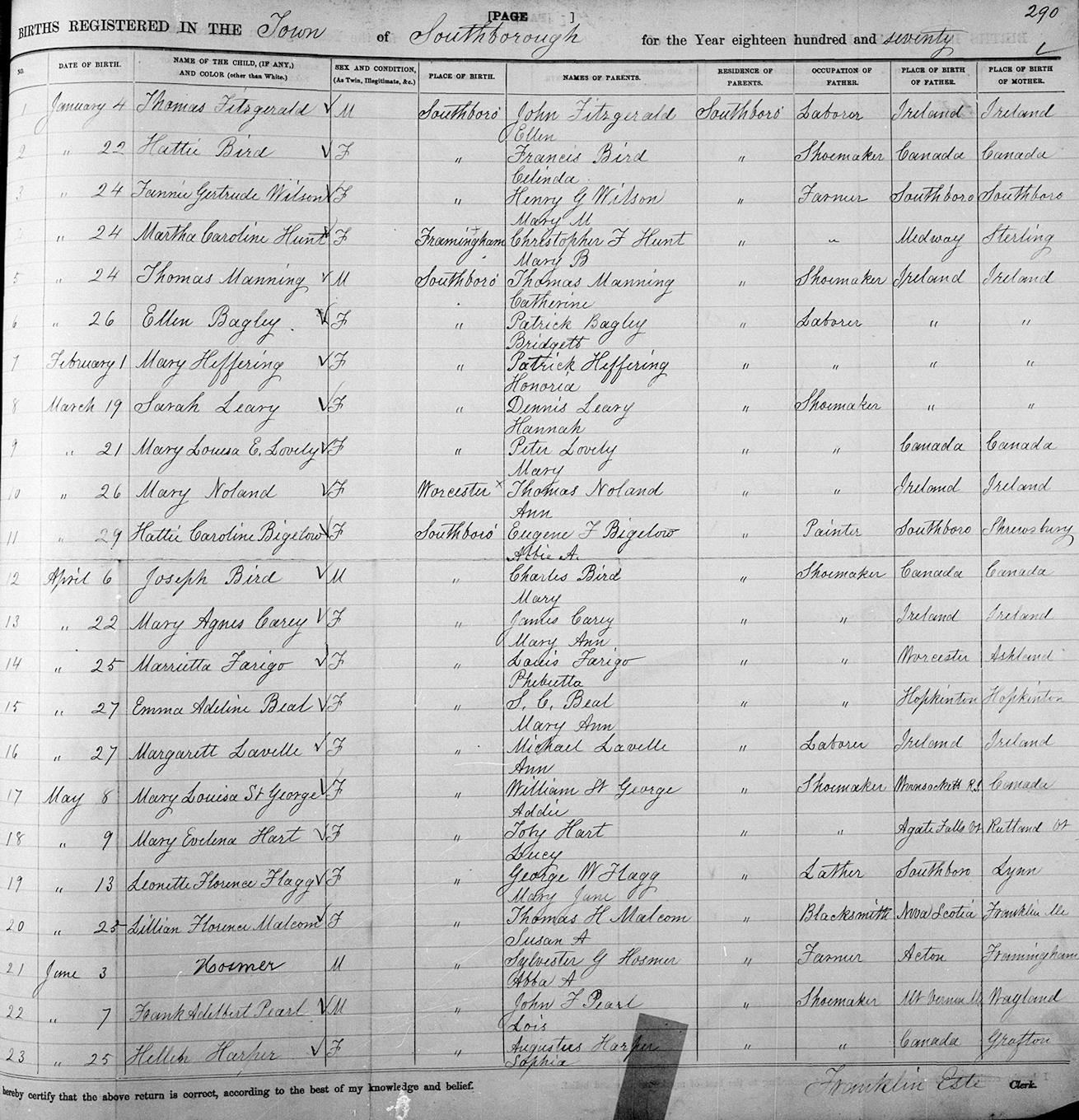 Birth Born on January 24, 1870 in Framingham, Middlesex Co., MA Death Died on 1944 in Framingham, Middlesex Co., MA Buried in Church Hill Cemetery in Framingham, Middlesex Co., MA Marriages JOHNSON, Charles Rupert Married on June 02, 1897 in Framingham, Middlesex Co., MA Children JOHNSON, Robert H.: 1908 JOHNSON, Rachel Maria: March 10, 1912 - November 30, 2003 Sources Massachusetts Cemeteries: Church Hill Cemetery Framingham,MA Images Martha Hunt Birth Charles & Martha (Hunt) Johnson Charles Johnson Marriage
